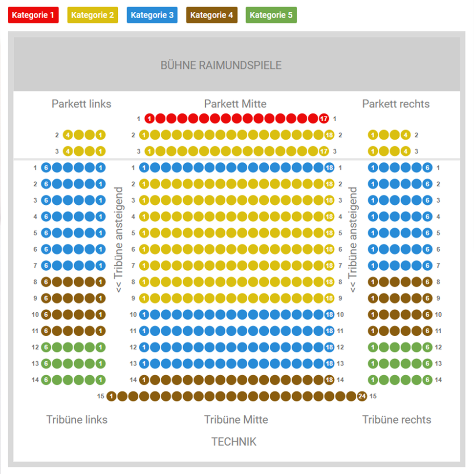 Kategorie 1: 72,00 €, Kategorie 2: 65,00 €, Kategorie 3: 55,00 €, Kategorie 4: 45,00 €, Kategorie 5: 30,00 €